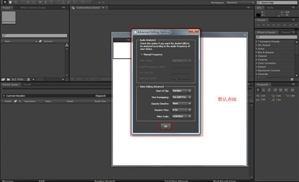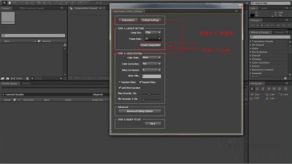 3、随后在新窗口中设置好尺寸等信息,使得生成一个comp!
