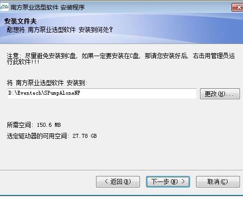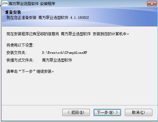 4、对安装的文件夹进行选择,默认文件夹“D:EventechSPumpAloneNF”,点击下一步;
