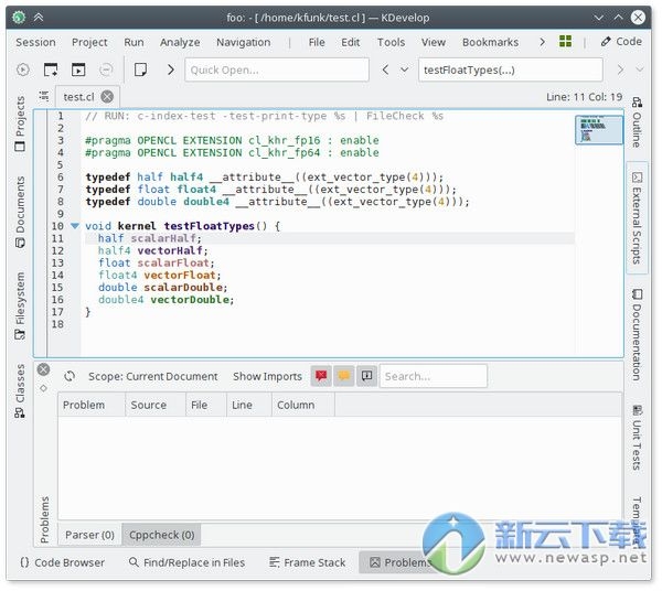 源代码编辑器具有语法高亮和自动缩进的功能(继承自Kate_Part)。
