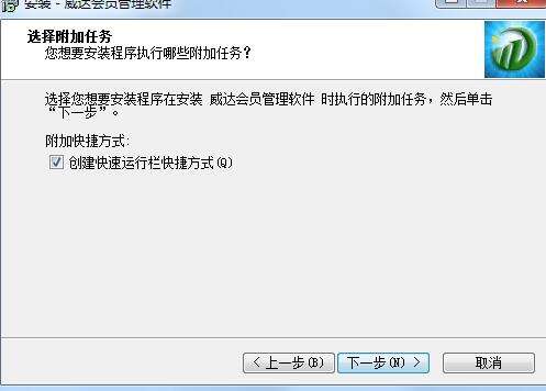 6、选择开始菜单文件夹,默认文件夹“威达会员管理软件”,点击下一步继续;