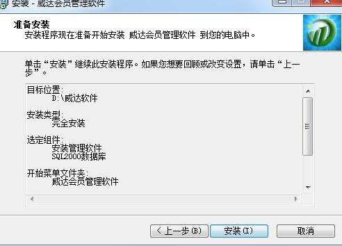 4、选择目标位置,默认位置“D:威达软件”,点击下一步;