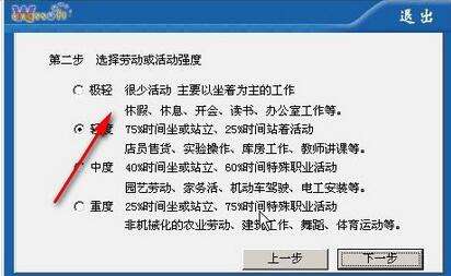 3、第二步可以设置劳动力度,根据不同的力度可以设置菜单的银营养价值