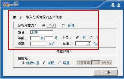 2、第一步就是输入对象的信息,可以在这里输入幼儿园小朋友的个人信息,例如身高、体重等