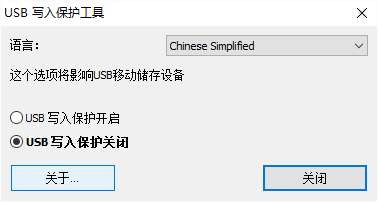 执行usb writeprotector后下方有两个选项,开启跟关闭防写功能。如果要开启防写,只要点选「usb 写入保护开启」,再按下〔关闭〕按钮,设置成功,界面自动消失。(没有在托盘等留下任何痕迹)