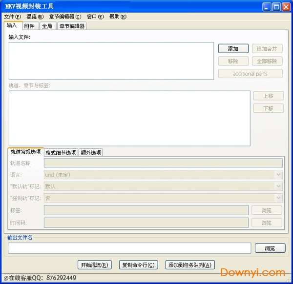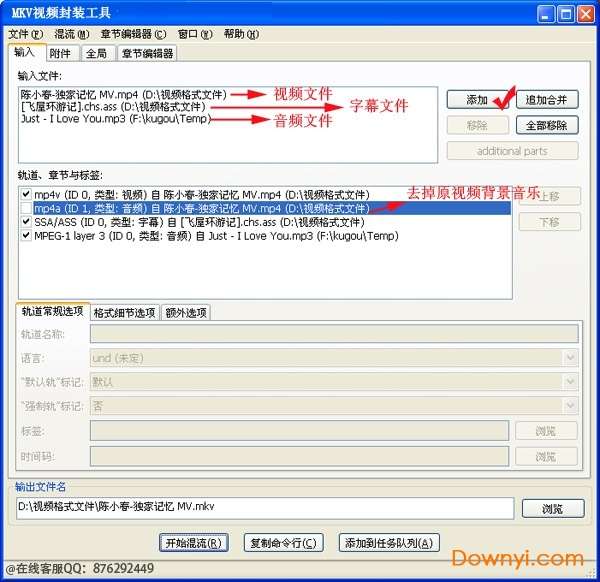 4、附件包括了附加文件列表、附件、输出文件名、开始混流等;