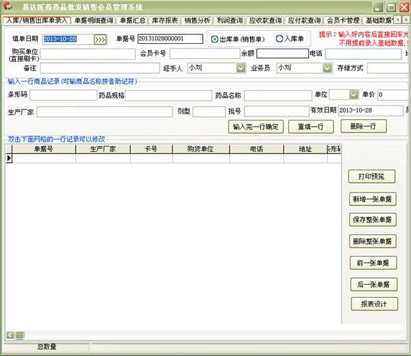 易达医药药品批发销售会员管理系统最新版是款界面简洁友好,功能强劲实用,设计严谨专业的医药药品批发销售会员管理工具,易达医药药品批发销售会员管理系统主要面向医药行业的销售开单、开票等工作业务而制作,易达医药药品批发销售会员管理系统拥有丰富、实用的行业标准功能,可以帮助用户轻松管理医药批发销售。