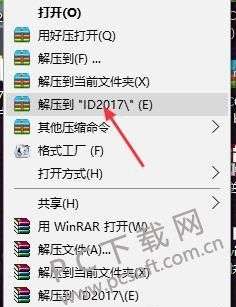 1、首先从PC下载网下载安装包,右击选择安装包,点击“解压到ID2017”。