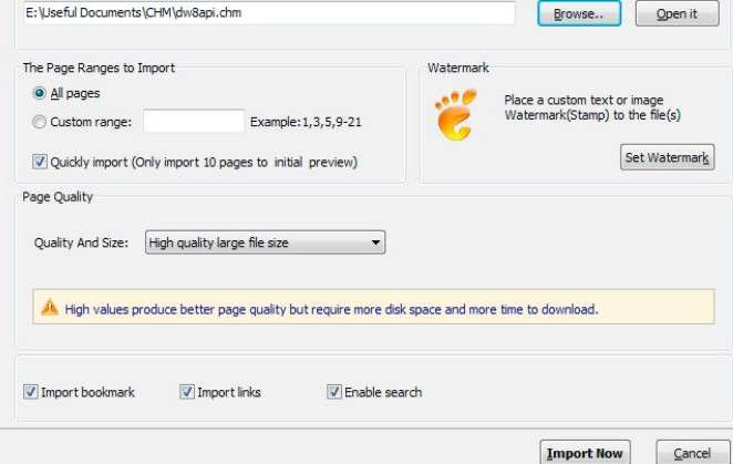 软件使您可以保留原始书签和链接。在导入CHM文件之前,需要勾选两个选项:“导入书签”和“导入链接”。此外,您还可以设置自己的书签或直接从计算机导入书签。此外,它还允许您导出书签并保存在您的计算机中。