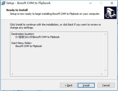 3、这里是软件的安装地址设置,默认的地址就是C:Program Files (x86)Boxoft CHM to Flipbook