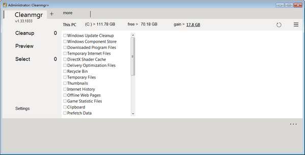 Cleanmgr +目前作为Beta版本提供。该程序可以复制磁盘清理的大部分功能,因此前景广阔。