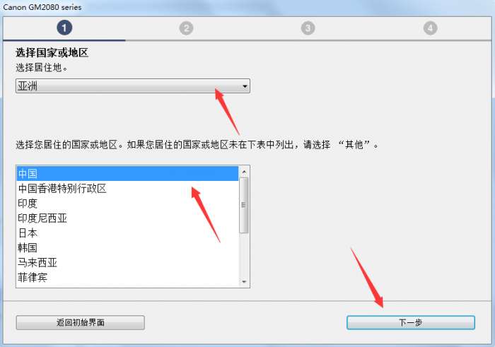 7、选择连接打印机方法,点击下一步,然后根据提示,等待程序安装完成即可,驱动安装完成之后,佳能Canon GM2080打印机就可以正常使用了