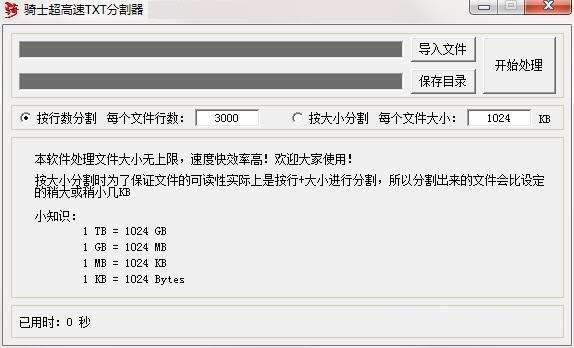 骑士超高速TXT分割器官方版可以无视原始文件大小,可以高速(每秒几十万行)的按行或按大小进行分割,它是一款专门为TXT文本打造的一款分割工具,支持各种文件分割,比例大小全部按自己喜欢,而且分割速度快、效率高。