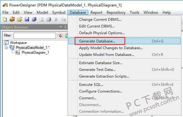 5、再用鼠标点击菜单栏中的“Database”,点选下拉菜单中的“Generate Database”(生成数据库),用户也可以通过使用快捷键“Ctrl+G”来打开此功能。