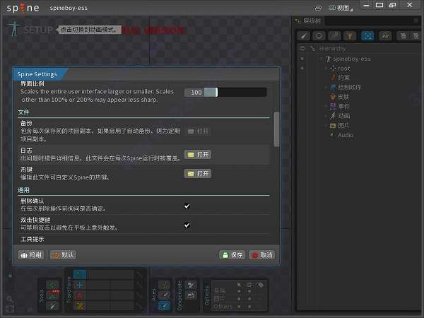 spine是一款可以帮助您构建2D动画的工具,在设计动画的时候,经常需要设计人物动作,这些动作都是需要通过骨骼绘制建立运动流程才能实现动作变化的,对于设计动作片、打斗、人物运动画面等方面的设计是非常有帮助的,内置大量渲染的工具以及图形创建工具,设计出来的模型可以通过移动、转换、变形、弯曲等方式修改人物动作,从而让您设计的人物在运动的时候更加方便!