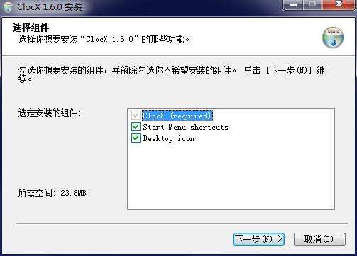1.在PC下载网下载ClocX最新版安装包,解压后,双击exe程序,进入安装向导,选择组件,单击下一步