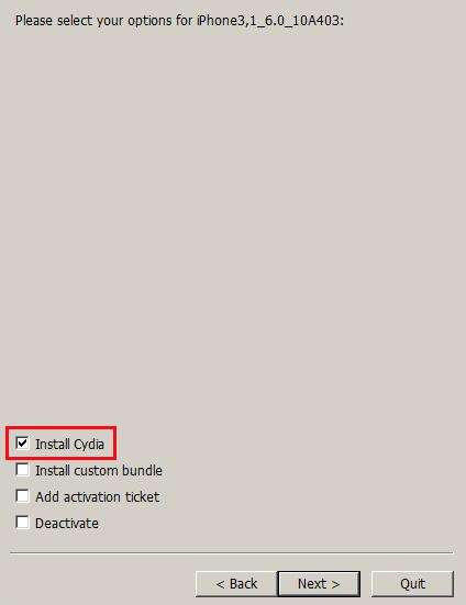 4、出现选项之后勾选“Cydia”,点击进入下一步;