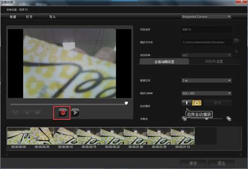 3.基本设置完成之后,就可以进行动画录制阶段了。等摄像头出现画面的时候,可以将物体对准摄像头,做一个动作就点击一下“捕获图像”按钮进行定格动画记录。