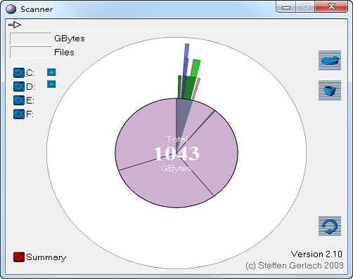 Scanner 左下角有个 Summary,点击它,可以看到整块硬盘的空间使用情况