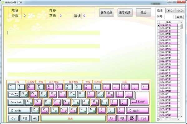 4、键盘图有指法分工、大小写英文字母键的提示,为初学者给出明确的指引。