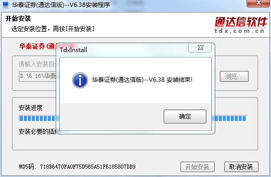 3、耐心等待华泰证券网上交易系统通达信安装完成就可以了。