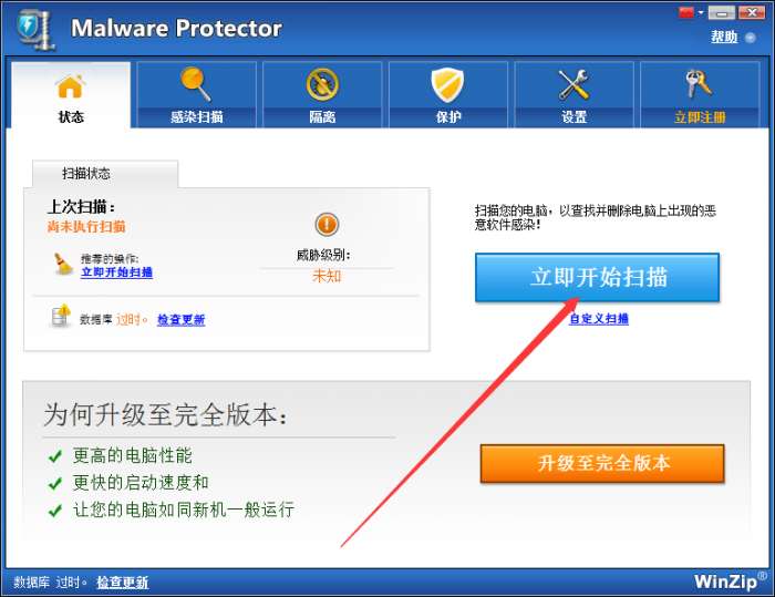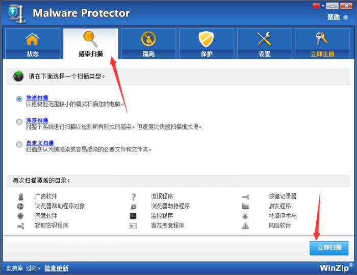 打开WinZip Privacy Protector软件就可以扫描,点击立即扫描