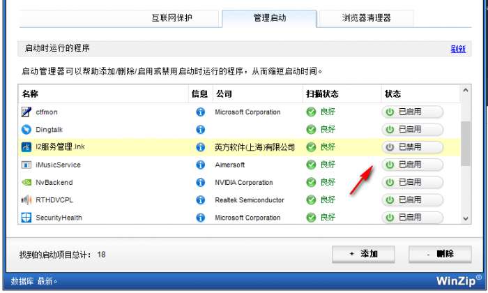 如果你安装的软件每次都自动运行就可以在这里关闭,扫描到该软件就可以点击禁止