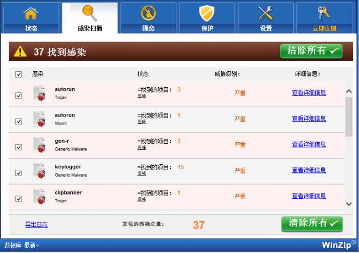 WinZip Malware Protector现在正在扫描您的系统以查看感染。这些感染可能会导致数据和个人信息丢夫