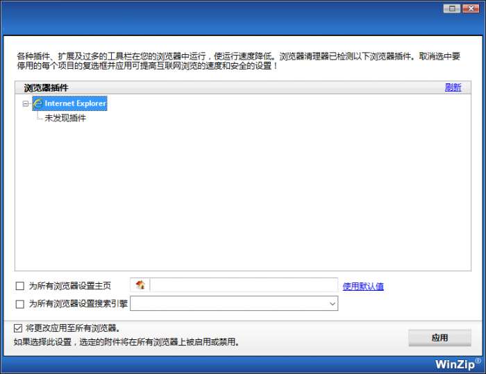 各种插件、扩展及过多的工具栏在您的浏览器中运行,使运行速度降低。浏览器清理器已检测以下浏览器插件。取消选中要停用的每个项目的复选框并应用可提高互联网浏览的速度和安全的设置!