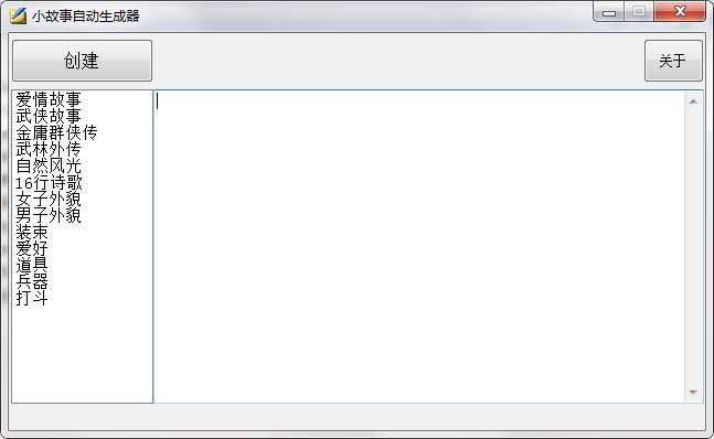 小故事自动生成器一款免费软件,能一键生成多个小故事片段,你可以使用它创建许多简短有趣的故事.当你在休息时,可以阅读这些小故事,搞笑的情节一定让你开怀大笑.当你在写一篇文章或者一部小说时,它生成的故事内容可以帮助你扩展思维.提供有力的帮助.同时它也可以用于生成随机名字,随机地名,随机物品,随机人物性格.......