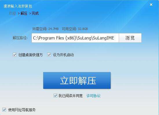 双击打开,进入安装向导,选择安装位置,默认c盘,点击立即解压
