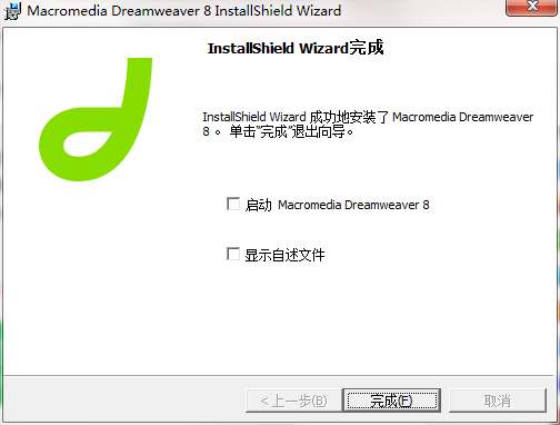 8.点击完成,Macromedia Dreamweaver8软件安装成功