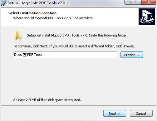 3.双击打开,进入Mgosoft PDF Tools软件界面,选择安装位置,点击下一步