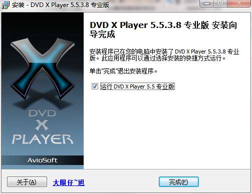 8.点击完成,DVD X Player软件安装成功