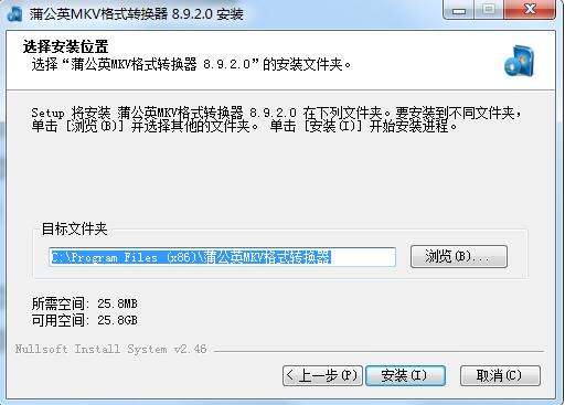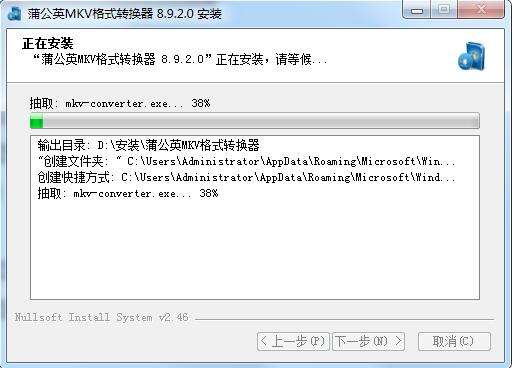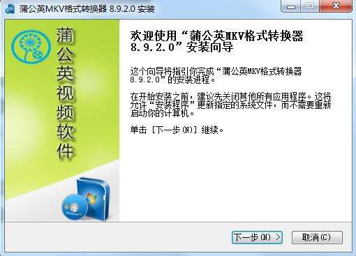 蒲公英MKV格式转换器中文版正在安装,耐心等待一下