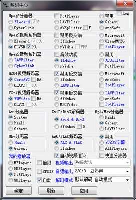 万能解码器官方版是一款独特新颖的视频格式转换软件万能解码器中文版支持包括 WMV、DVD、MPEG、FLV、AVI、MKV、RM/RMVB 等各种常见视频格式,RM、AAC、AC3 等音频格式的播放,万能解码器官方版支持任何播放器来播放各种格式的媒体文件,以及各种主流转换器进行WMV/DVD/FLV等格式转换。