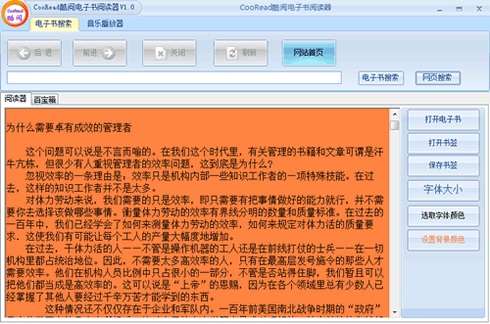酷阅电子书阅读器(CooRead)软件是由TXTBOOK开发的一款多用途电子书阅读器,目前支持TXT,UMD,JAR格式电子书,并且支持txt文件分割,UMD,JAR格式电子书转化为TXT格式,并且阅读器内置了音乐播放器,软件界面友好,操作简单。