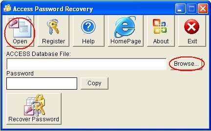 步骤2:单击浏览按钮或打开按钮选择MDB格式的密码保护文件。