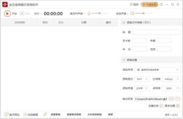 金舟语音聊天录音软件是一款实时录音软件,不压缩录音大小,还原无损音质;支持话筒录音、计算机系统录音、音乐平台录音、有声读物录音、广播录音、视频会议录音、语音聊天录音等,另外还有定时录音功能,非常方便,有需要的朋友欢迎来下载使用!