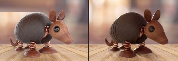 所显示的模型具有背景和默认光源(左),然后具有使用“匹配图像”生成光源的背景(右)。