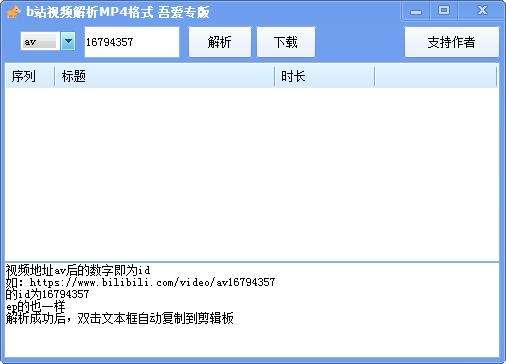 2、找到你想要下载的视频文件,复制他的av号,视频地址av后的数字即为id,比如https://video/av16794357的id为16794357,然后点击解析。