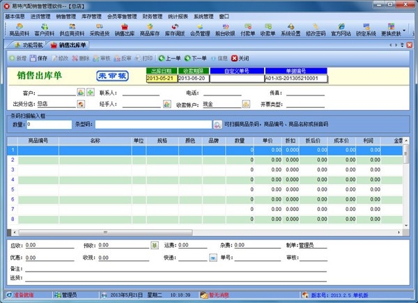 易特汽配销售管理软件最新版是一款非常适合汽车配件行业使用的销售管理软件,易特汽配销售管理软件最新版为大家提供了商品销售管理系统 ,库存管理系统(仓库管理系统),财务和报表系统等功能。通过易特汽配销售管理软件可以有效提高大家汽配销售的的管理效率。