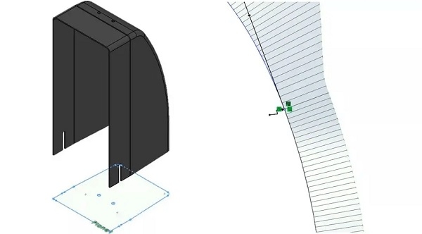 在样条曲线和2d草图的任何其他草图实体中应用扭转连续性关系,对草图实体应用等曲率和等效曲,使曲线之间在端点处更加光顺连续。