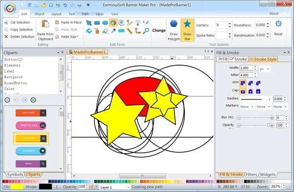Banner Maker Pro支持使用纯色,渐变和图案填充或抚摸每个矢量对象。此外,Banner程序内置了200多个过滤器。通过在设计中应用过滤器,Banner广告看起来新颖,别致且具有视觉冲击力。