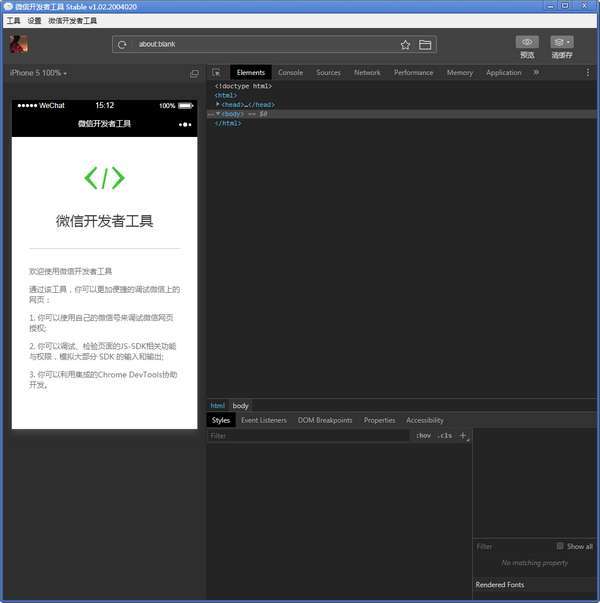一、下载安装微信开发者工具并打开软件。