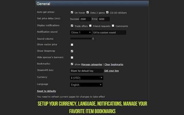 1、在chrome浏览器中安装steam inventory helper插件后,用户可以点击对其进行设置。如下图所示: