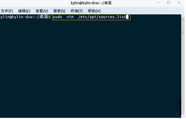 2、如下图所示:在终端中输入sudo vim etc/apt/sources.list