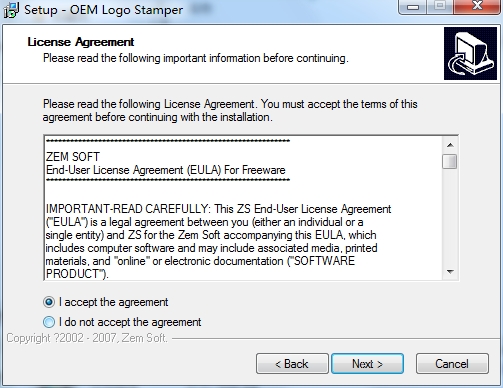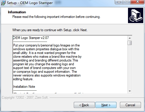 5、建议安装在D盘,默认“C:Program Files (x86)Zem SoftOEM Logo Stamper”,点击Next;