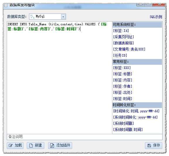 (需有数据库相关知识),并可使用标签替换相应数据。也可在采集器模块文件夹中加载某一模块进行编辑。