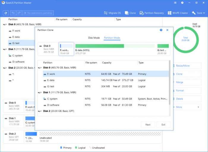 选择一个目标分区并克隆一个HDD/SSD分区。它还可以将整个磁盘复制到另一个磁盘。