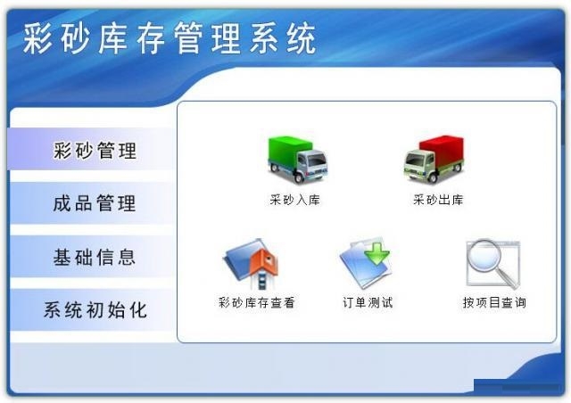 2、科羽彩砂库存管理系统官方版支持彩砂管理:彩砂入库、彩砂出库、彩砂库存查看、订单测试和按项目查询;